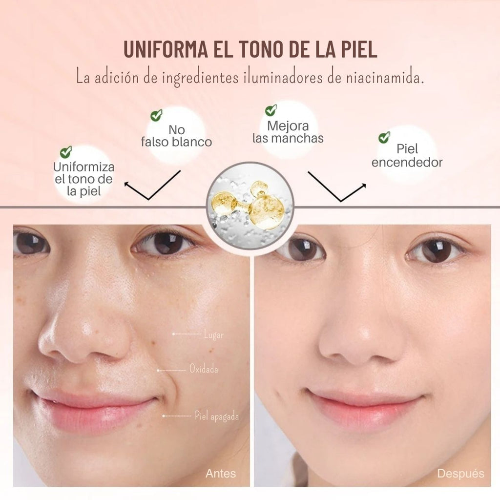 Textura Transpirable (Efecto Ligero): Di adiós a la apariencia pesada. La fórmula ligera permite que la piel respire y proporciona un toque natural, como si no estuvieras usando nada.