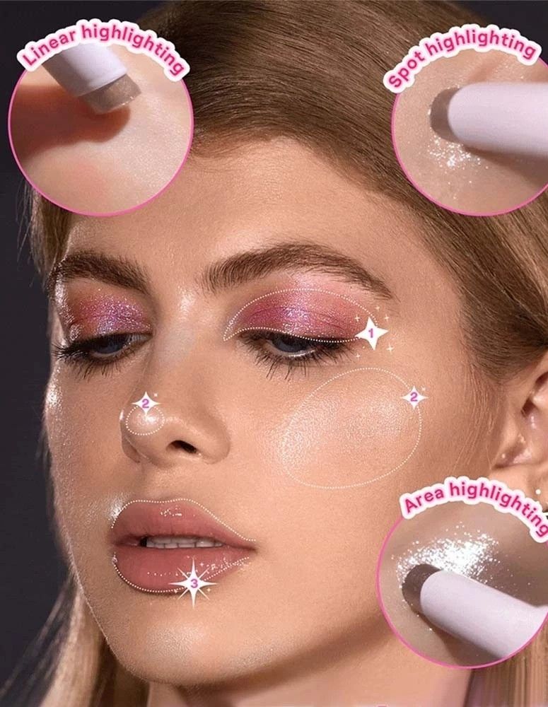 Versatilidad 3-EN-1: Cada stick puede usarse como Sombra para dar color, Iluminador en puntos altos del rostro o como Bálsamo Labial con un toque de brillo.